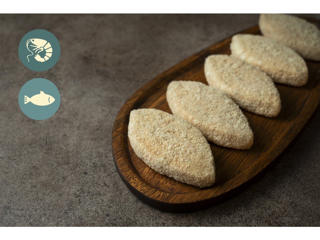 Jemné karbanátky s lososem a krevetami. Lehká mořská chuť.