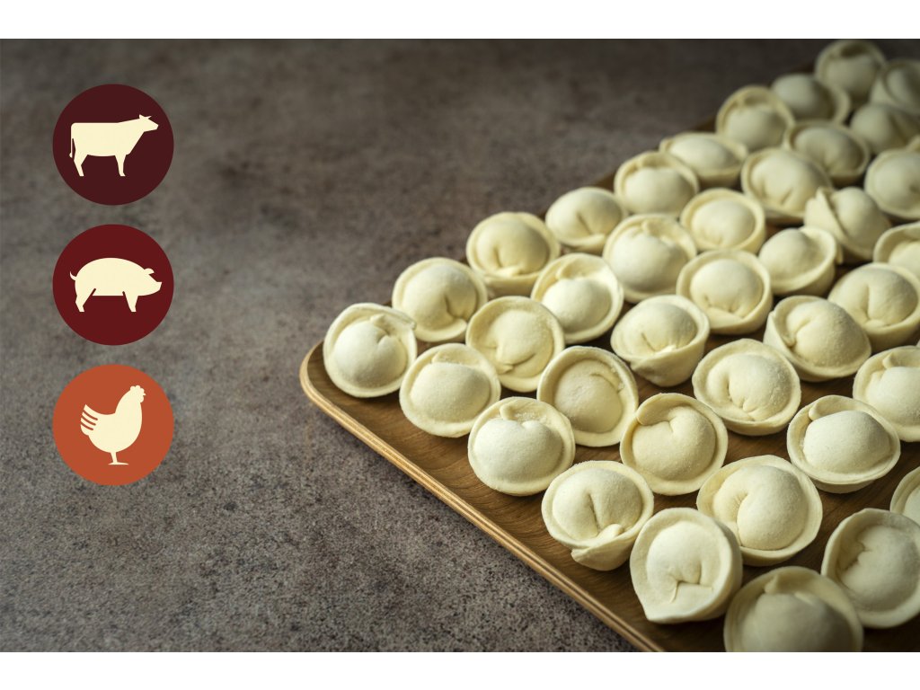 Pelmeně ze tří druhů masa. Bohatá a poctivá masová kombinace.