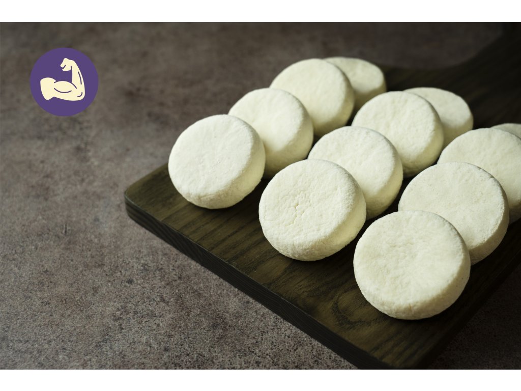 Lehčí proteinový syrnik s jemnou mléčnou chutí. Textura působí pevněji, ale stále příjemně měkce. Chuť je čistá a ne příliš sladká. Vhodné jako rychlá zdravější svačina.
