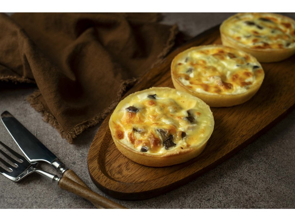Slaný tart s jemným kuřecím masem a kousky hub. Chuť je měkká, lehce krémová a hezky vyvážená. Těsto působí křehce a náplň je příjemně vláčná. Skvělá volba pro jednoduchý teplý oběd nebo lehčí večeři.