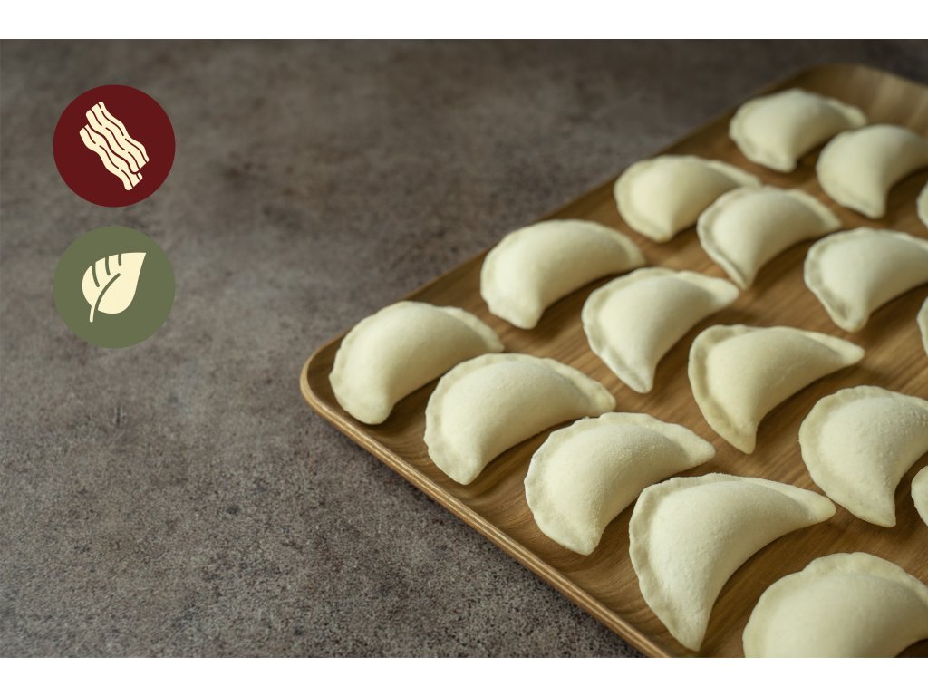 Vareniky se směsí kysaného zelí a jemné slaniny. Chuť je výrazná, ale zároveň příjemně vyvážená, bez zbytečné kyselosti. Náplň působí měkce a celkově velmi domácky. Skvělé pro milovníky tradičních chutí.